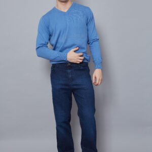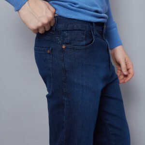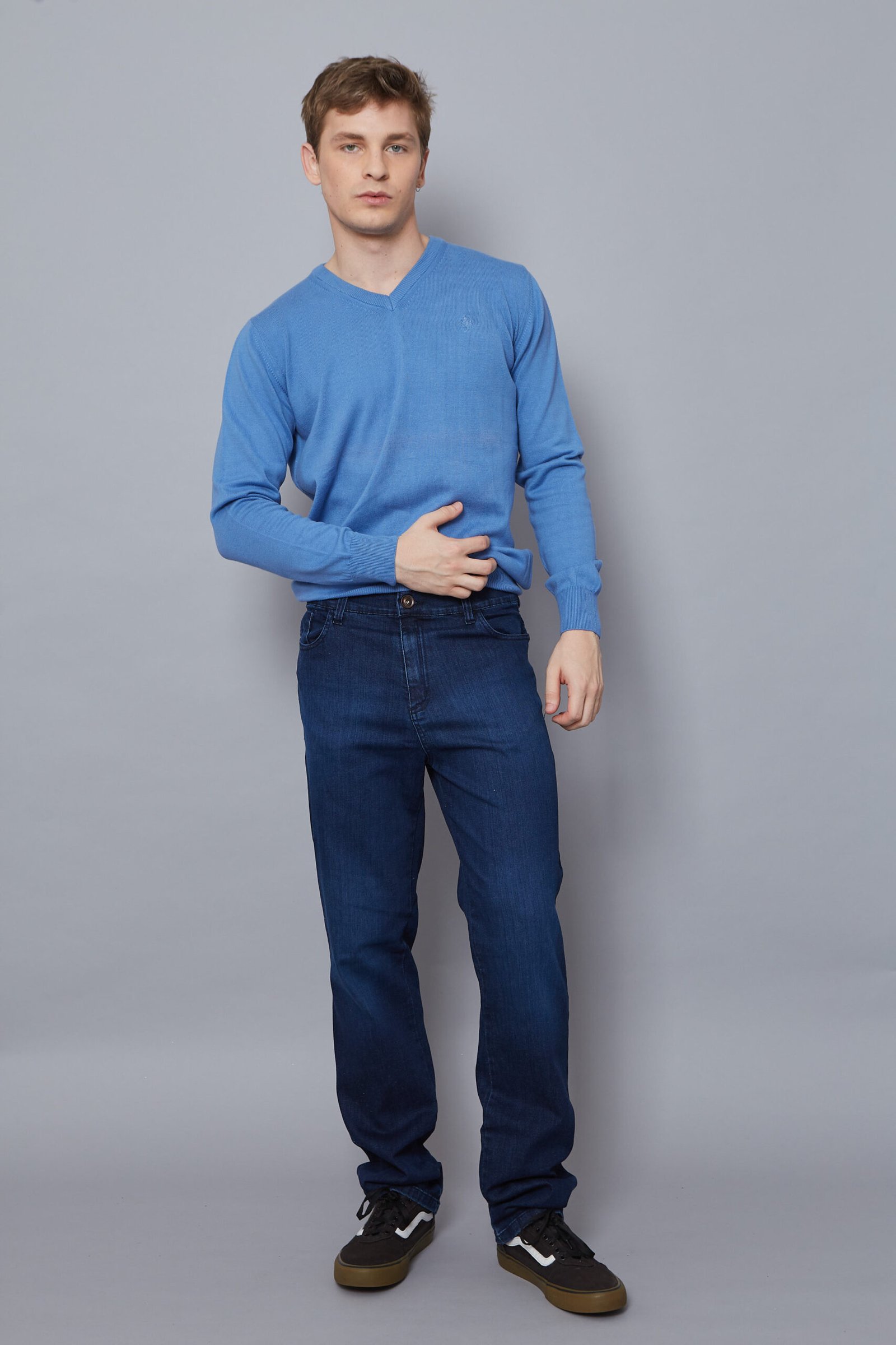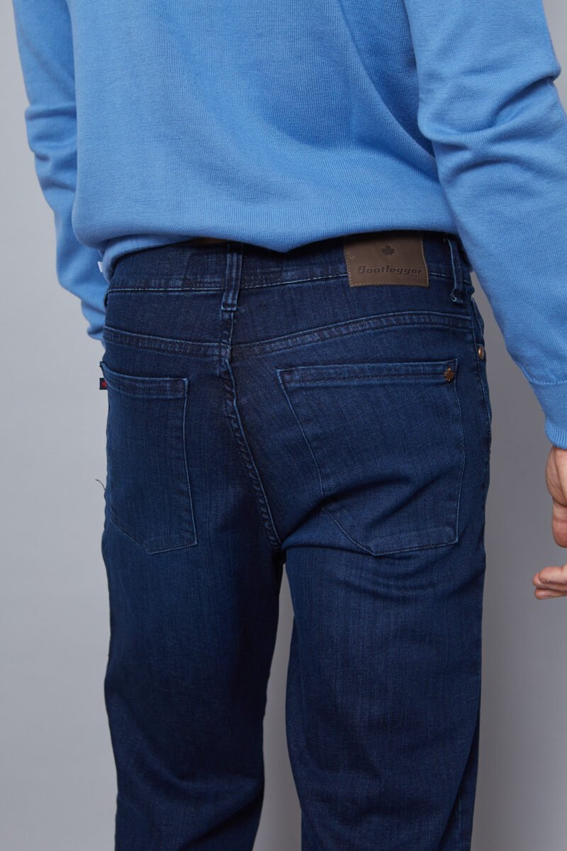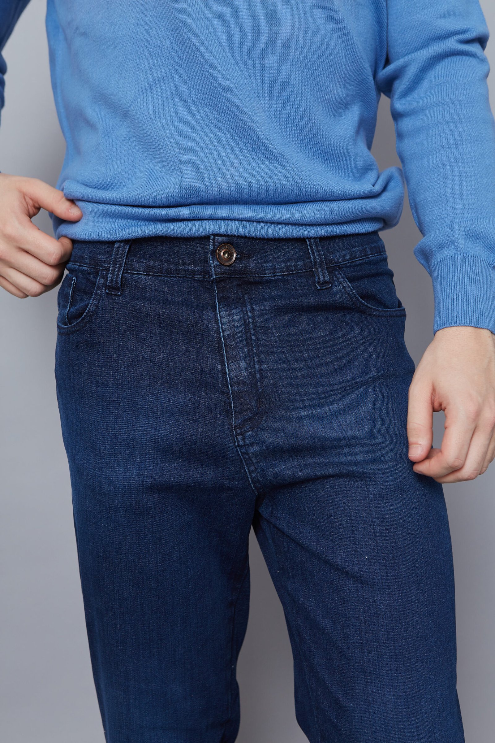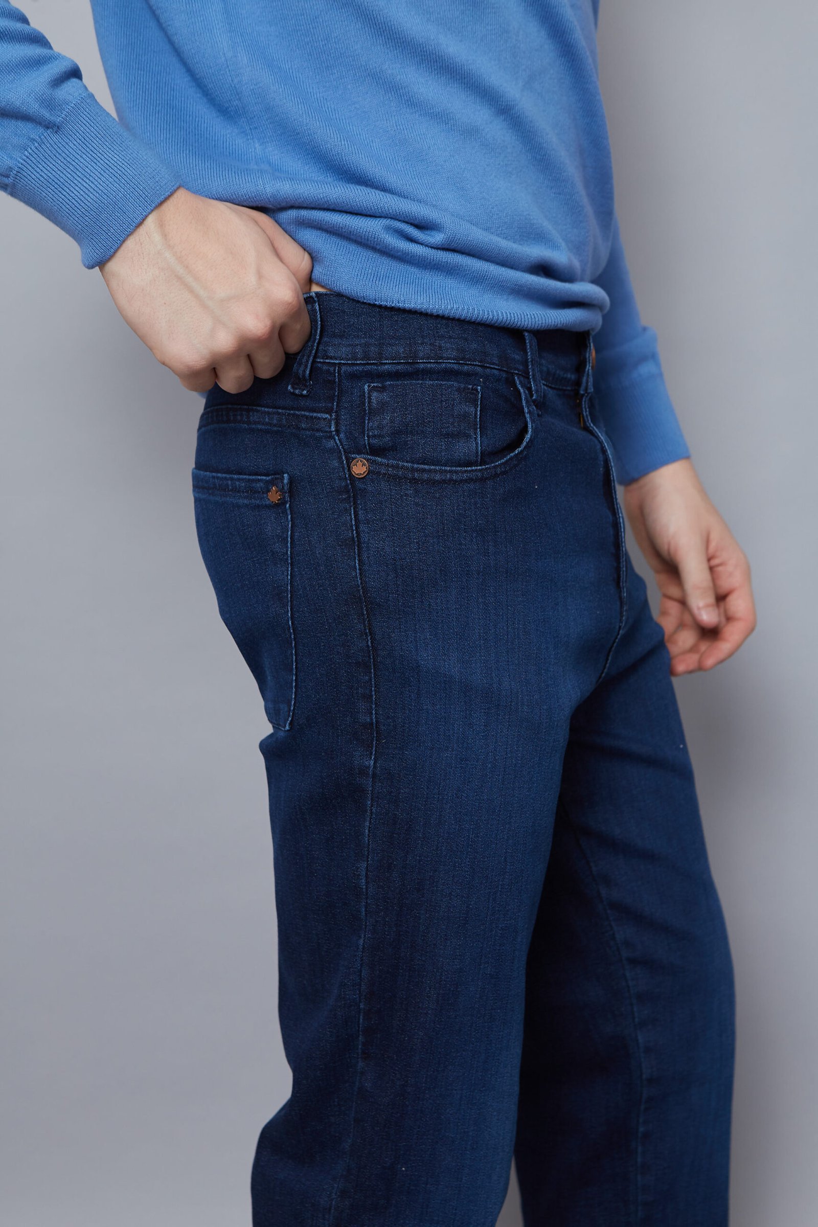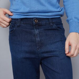 Denim azul soft skinny, corte clásico.